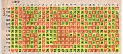 今天同事在算生男生女,问了问我的怀孕日期,然后告诉我说:你看,一算就是男孩,我这个表很准确的!